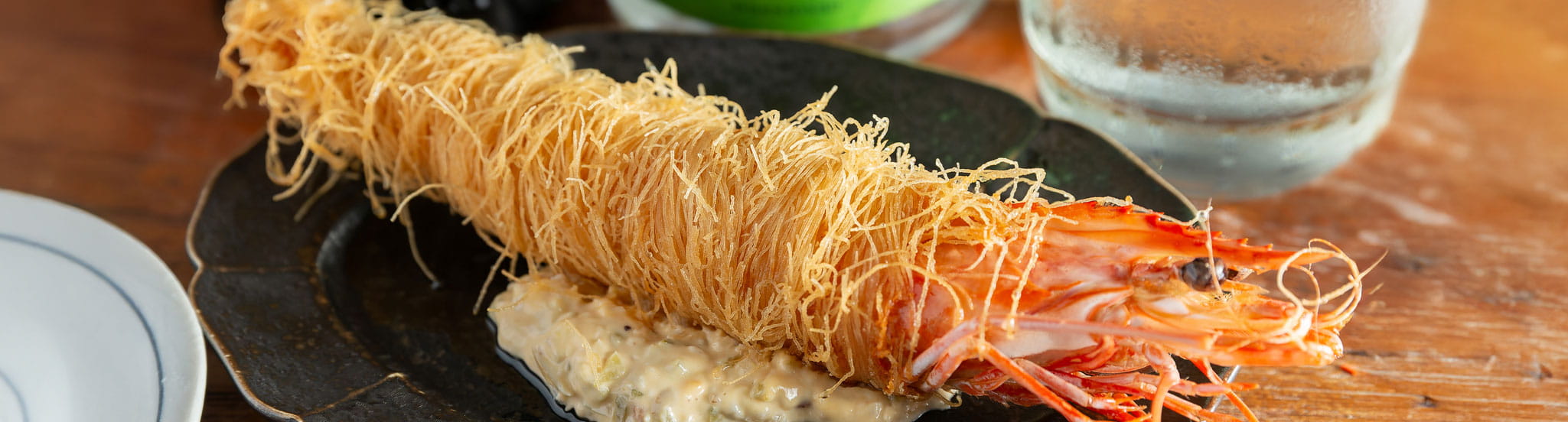 路地裏の黒を基調とした重厚感ある外観が目印です。町屋造りの2階に広がる、木の温もりを感じる落ち着いた空間でお食事をお楽しみいただけます。